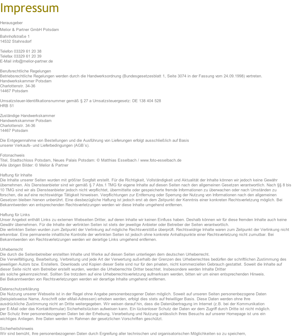Copyright © 2014-2018 by Melior & Partner GmbH Potsdam | Alle Rechte vorbehalten. | Design by Matthias Esselbach | Datenschutzerklärung